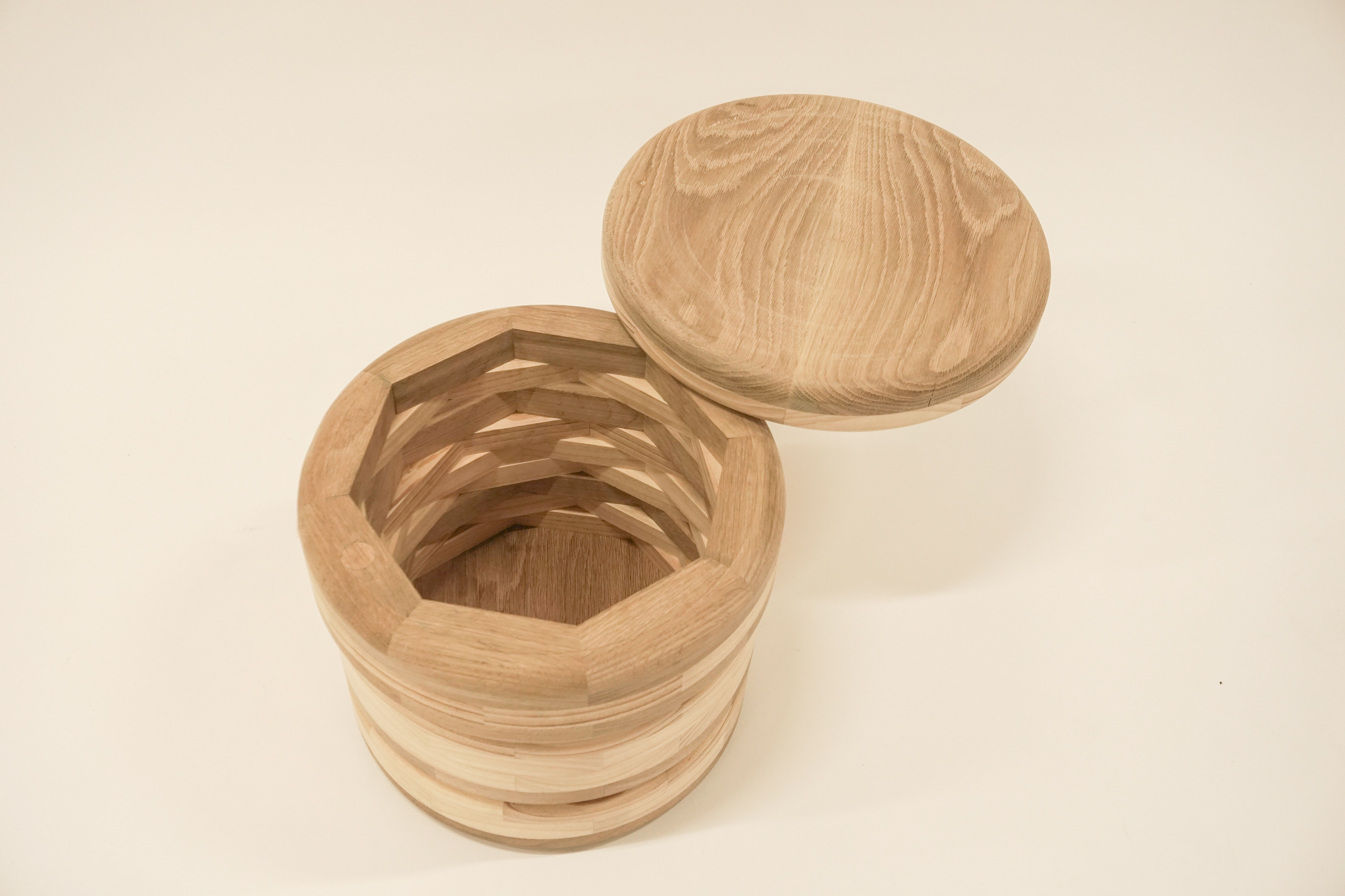 After our iterations, we made this adjustable with the ability to store items inside and we finally had our finished product. Timbers used were Ash, Oak and Pine. We also managed to recess a neodymium magnet into the lid for a secure close to the lid.